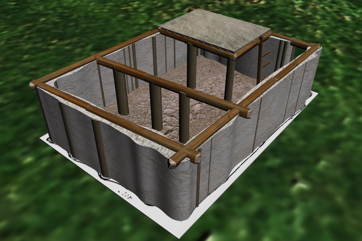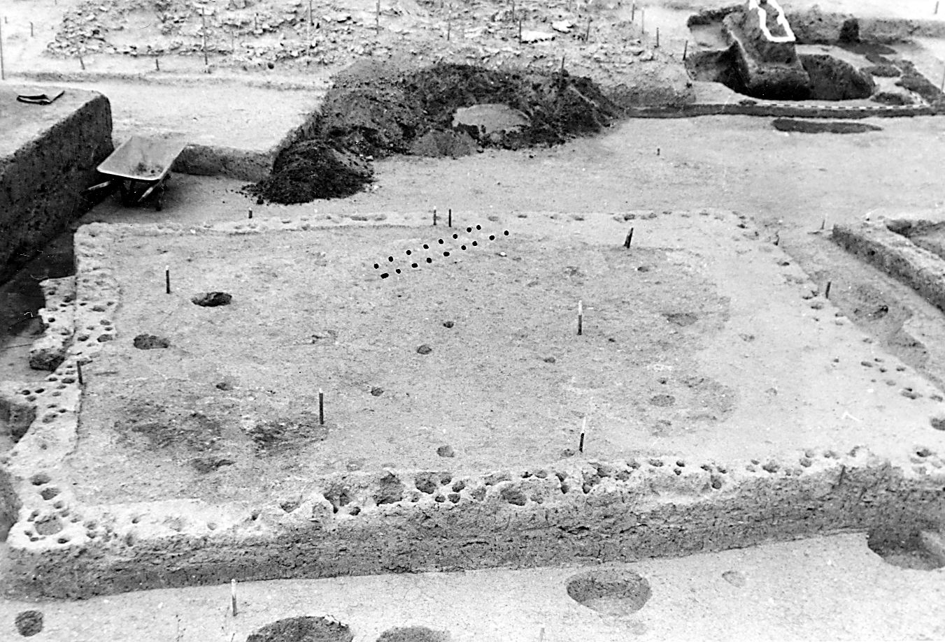 The roof was sustained by a big pillar structure stuck deep into ground. They were situated on the wall’s route and inside the house also. The pillars from the old phase were almost on the same place as those from the new phase. |