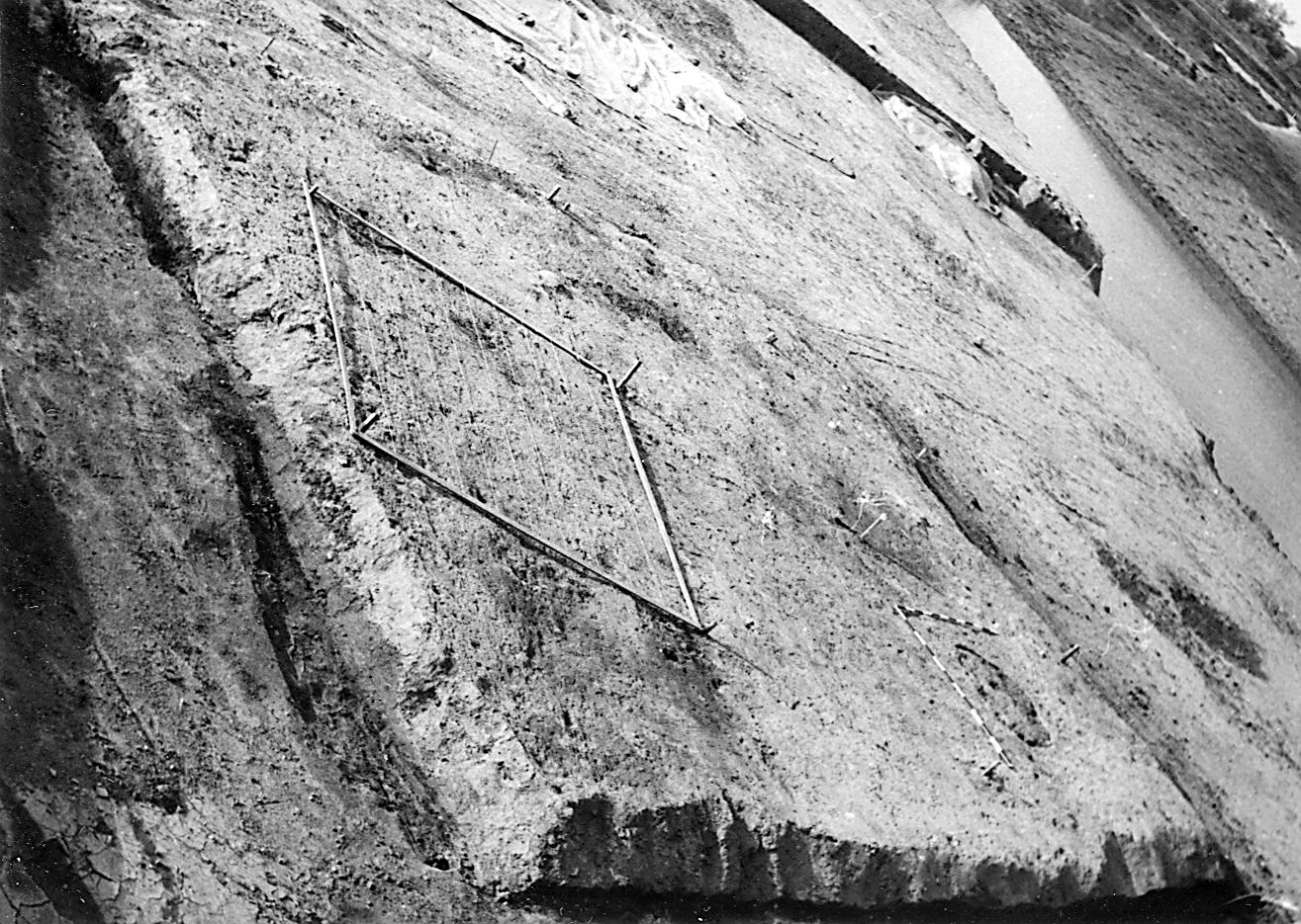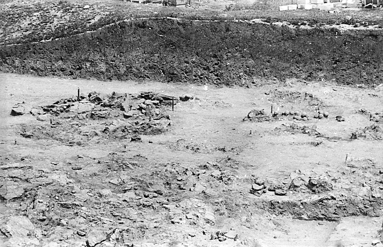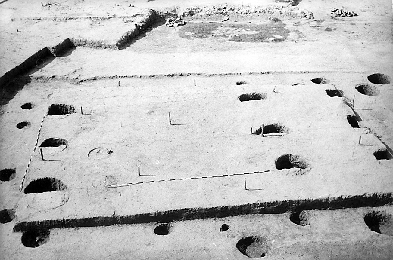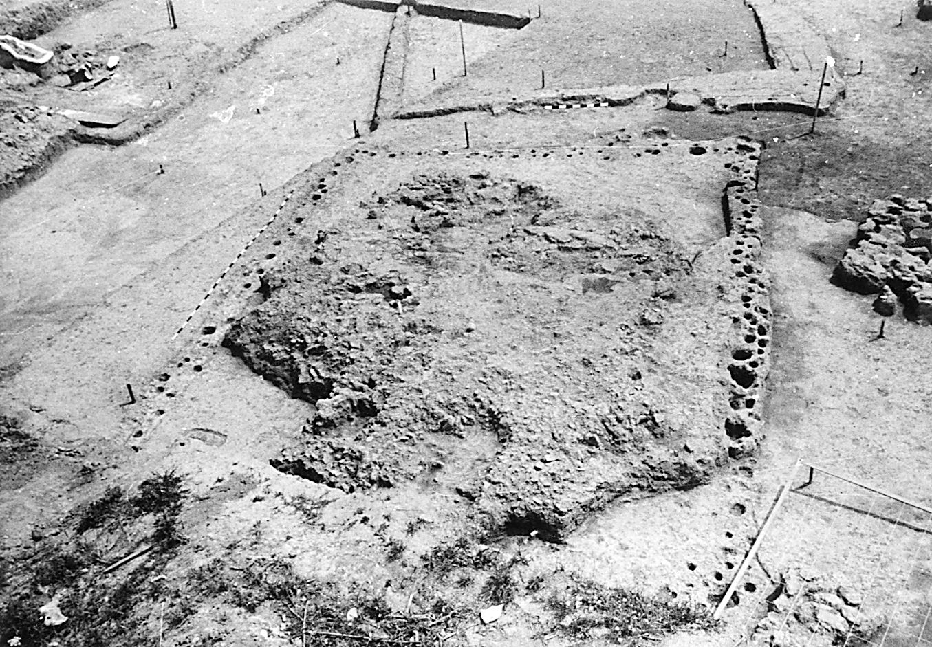 The principal pillars were stuck deeper than the other pillars and they were at 1.8 – 2.5 m distance of each other. The poles arranged on three rows were sharped at one end and stuck at different depths. Z. Maxim and Fr. Resch analyzed the structure of the walls (from the South, East and North), which were well preserved. |