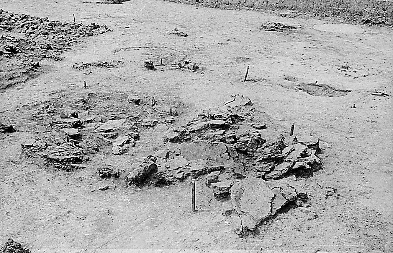 Under theNorth wall ruins another fragmental clay idol was found. The center part of the north wall was well preserved. Unlike other walls, this wall had more stratums of clay soldering, being thicker. |
